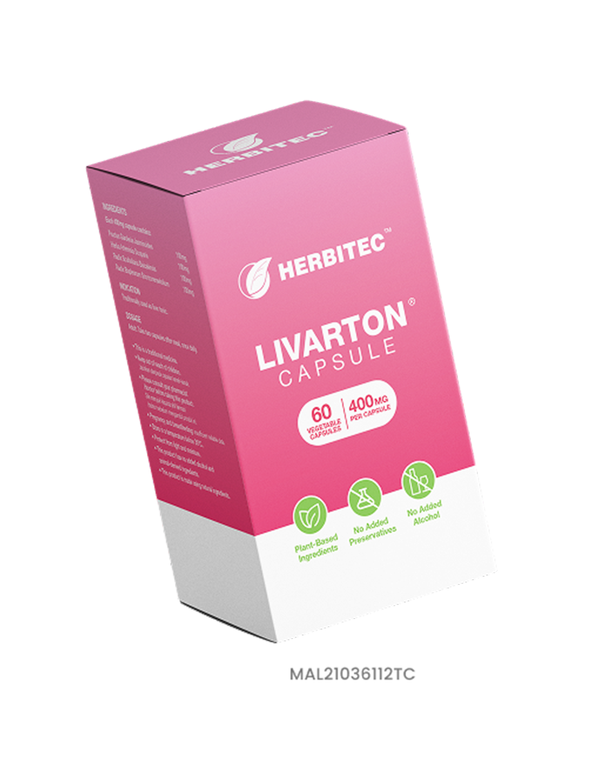 Livarton is a meticulously crafted formulation, blending multiple herbs with synergistic effects, with the aim to support liver functions, detoxifications and alleviate symptoms of fatty liver and cirrhosis.